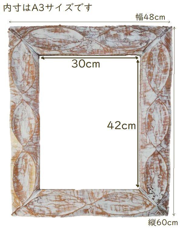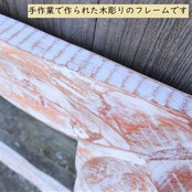 ミラー 鏡 壁掛け 木製 ウッド フレーム おしゃれ 木彫り レリーフ ハンドメイド 天然木 アジアン雑貨 バリ レトロ アンティーク風 カービングミラー シャビ— 額縁 42 30 額 新生活
