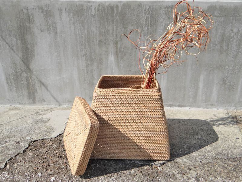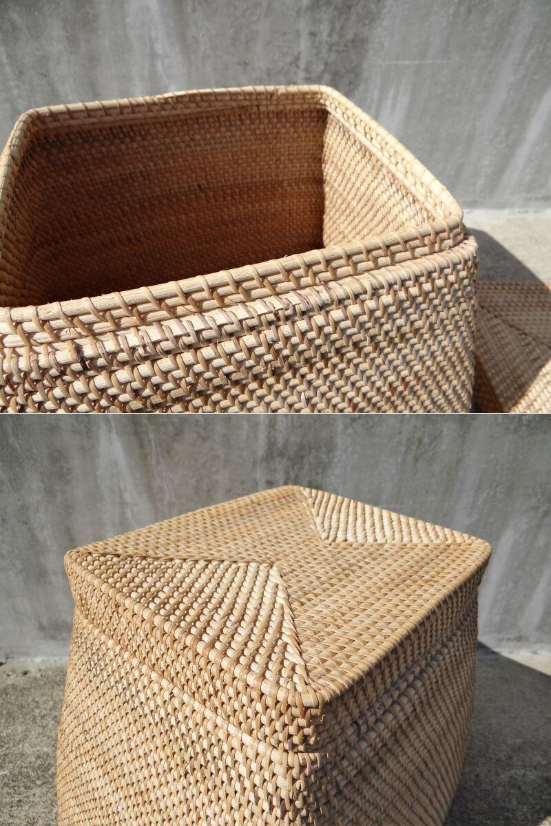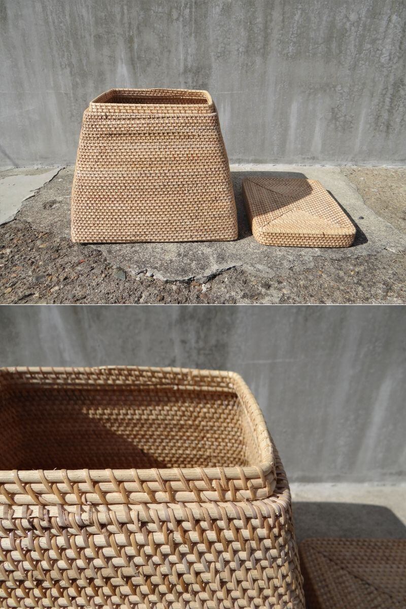 ラタン ボックス かご 収納かご 台形 ふた付きかご ふた付き 籐 自然素材 アジアン ハンドメイド ナチュラル バリ 新生活