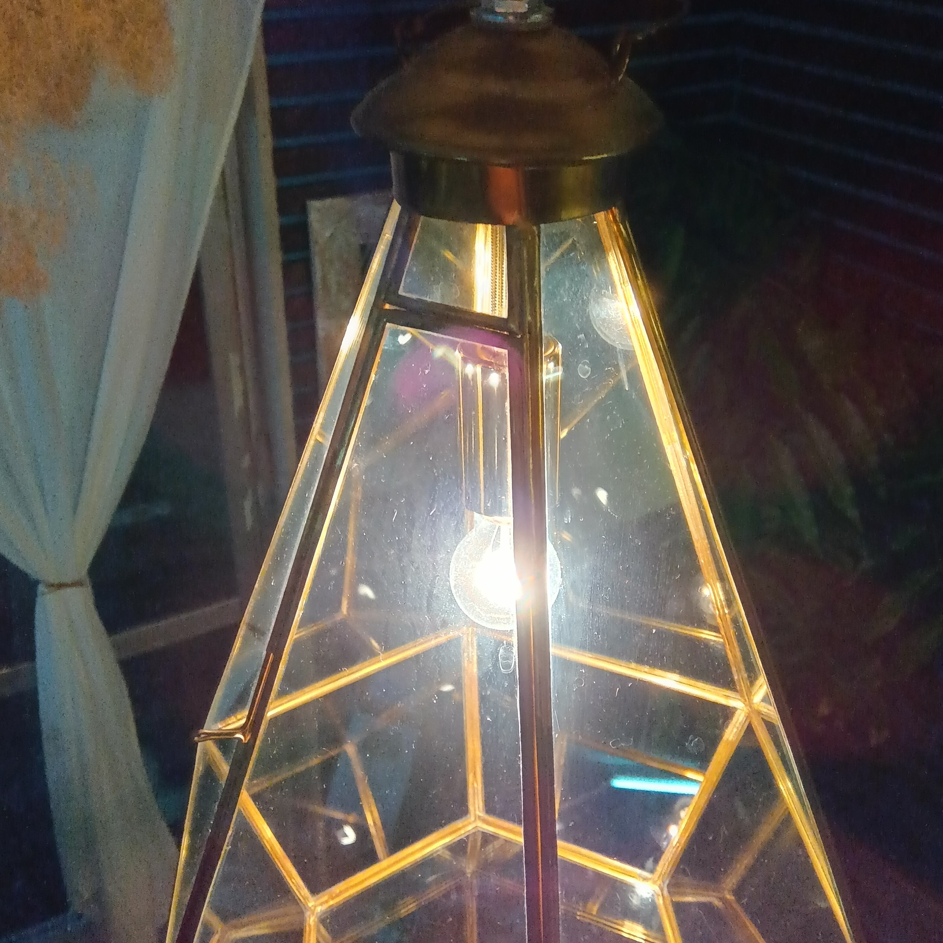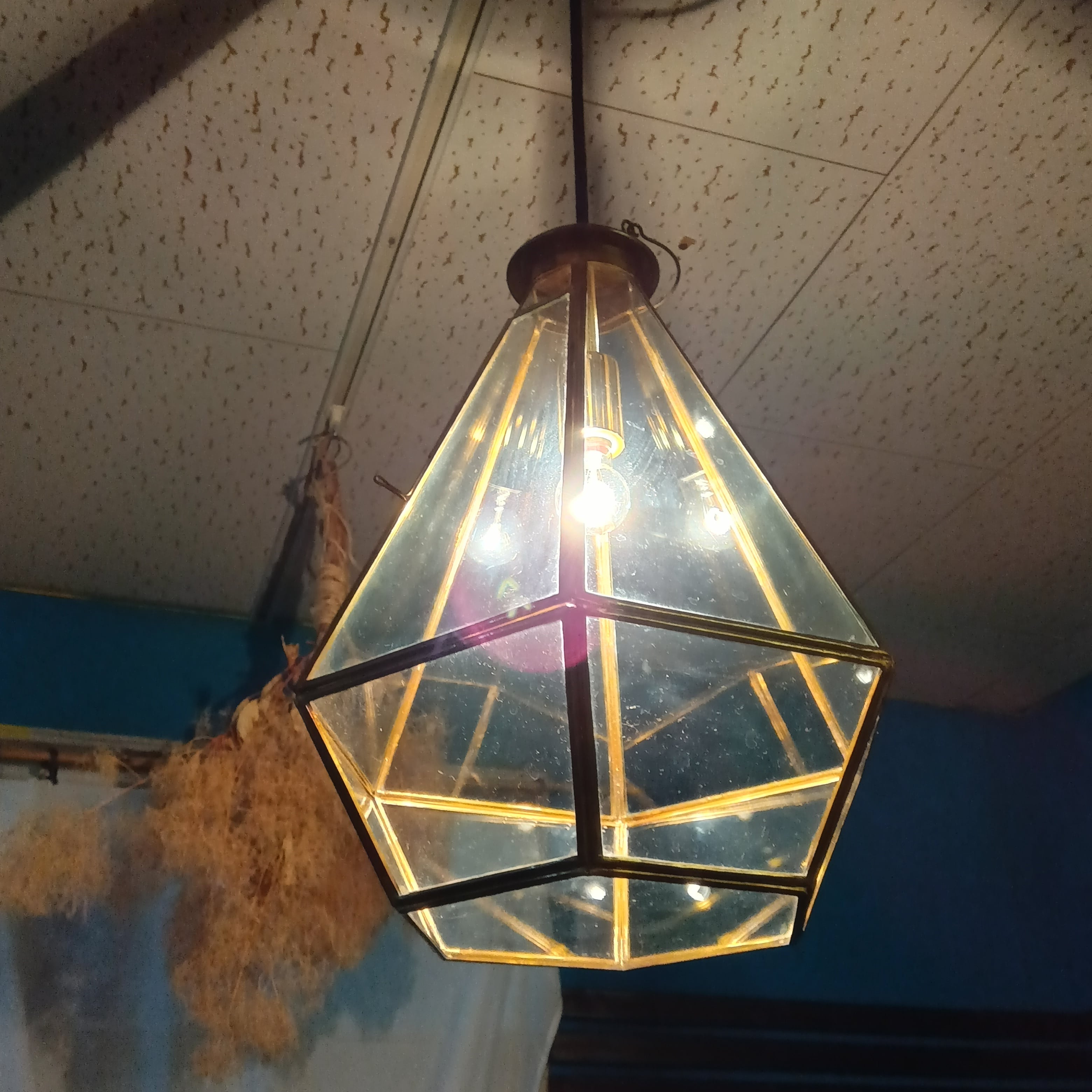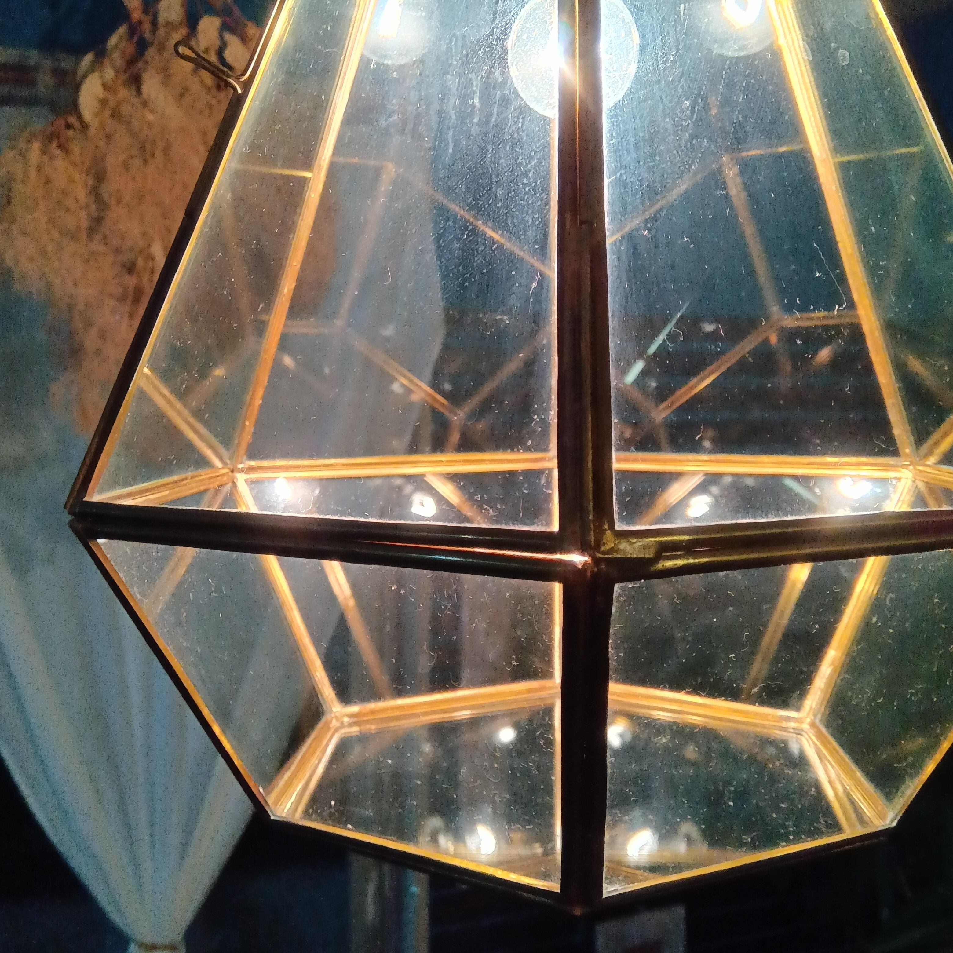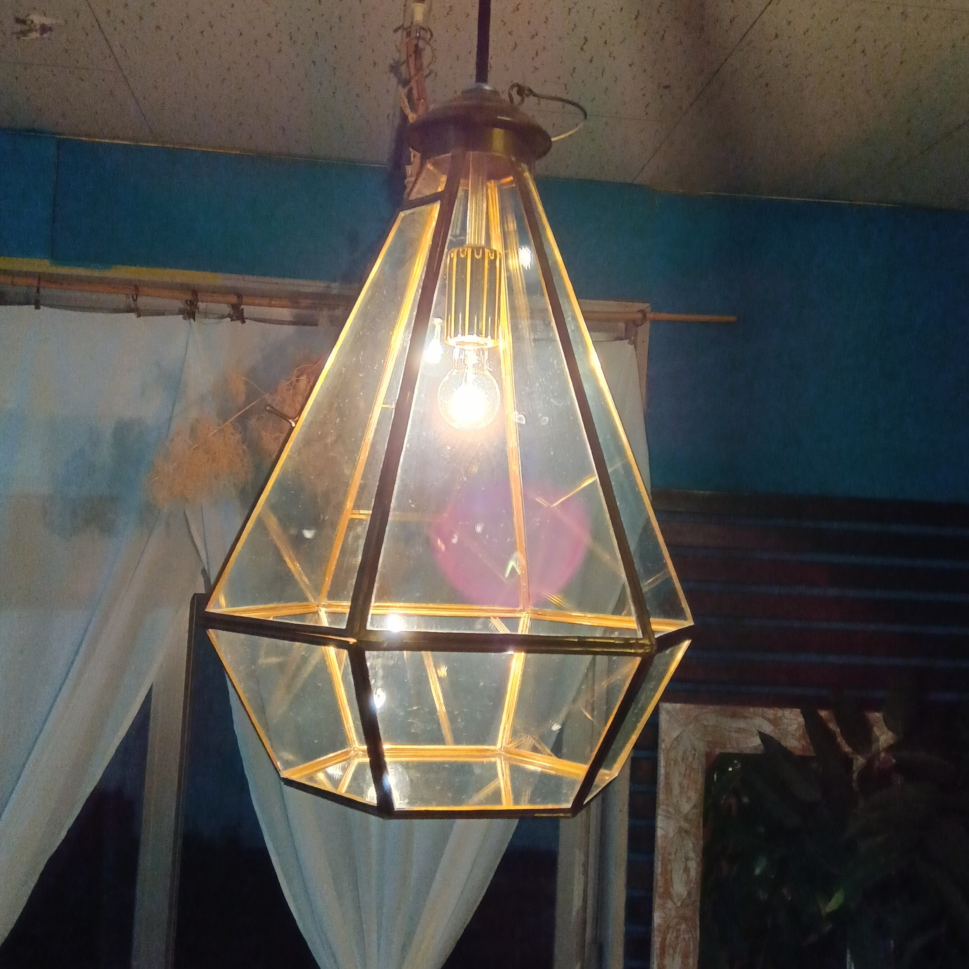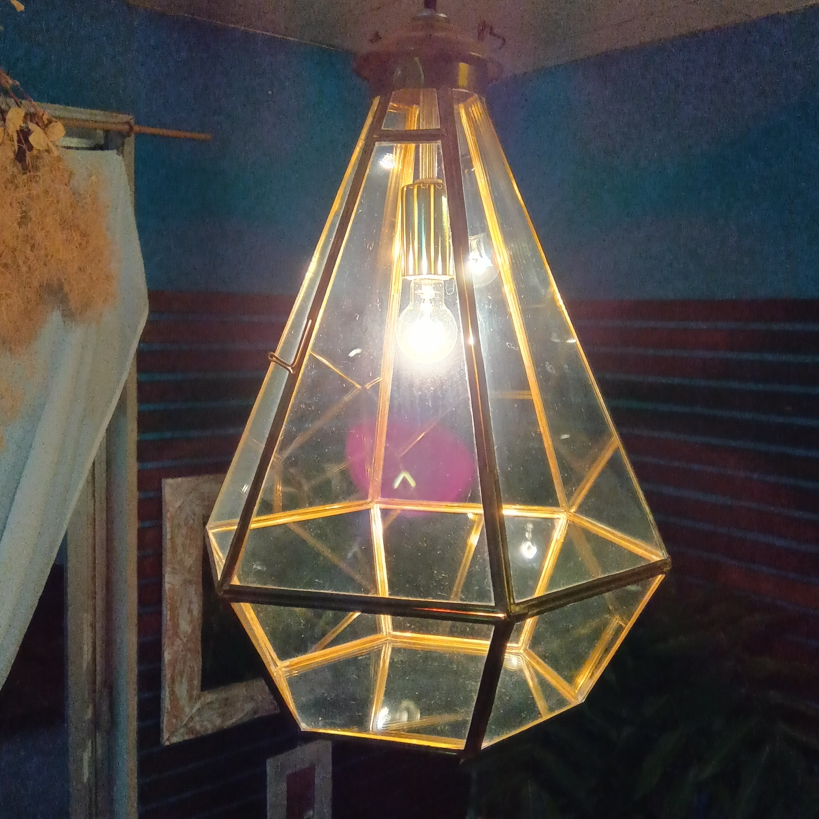 美しい真鍮のフレームとクリアなガラスを組み合わせた、多面体のペンダントランプです。