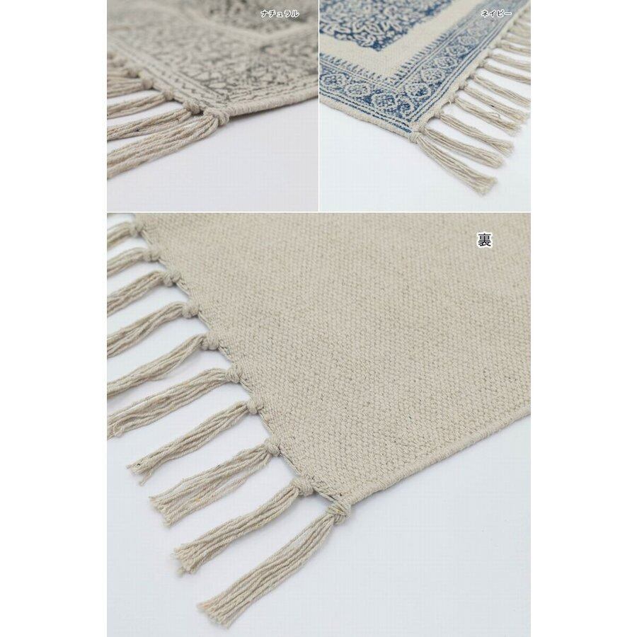 手仕事のざっくりとした風合いで、空間をどこか懐かしく彩るインド綿ラグマットです。