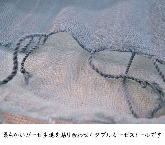 二枚のガーゼ素材を両端で縫い合わせたダブルガーゼストールです。