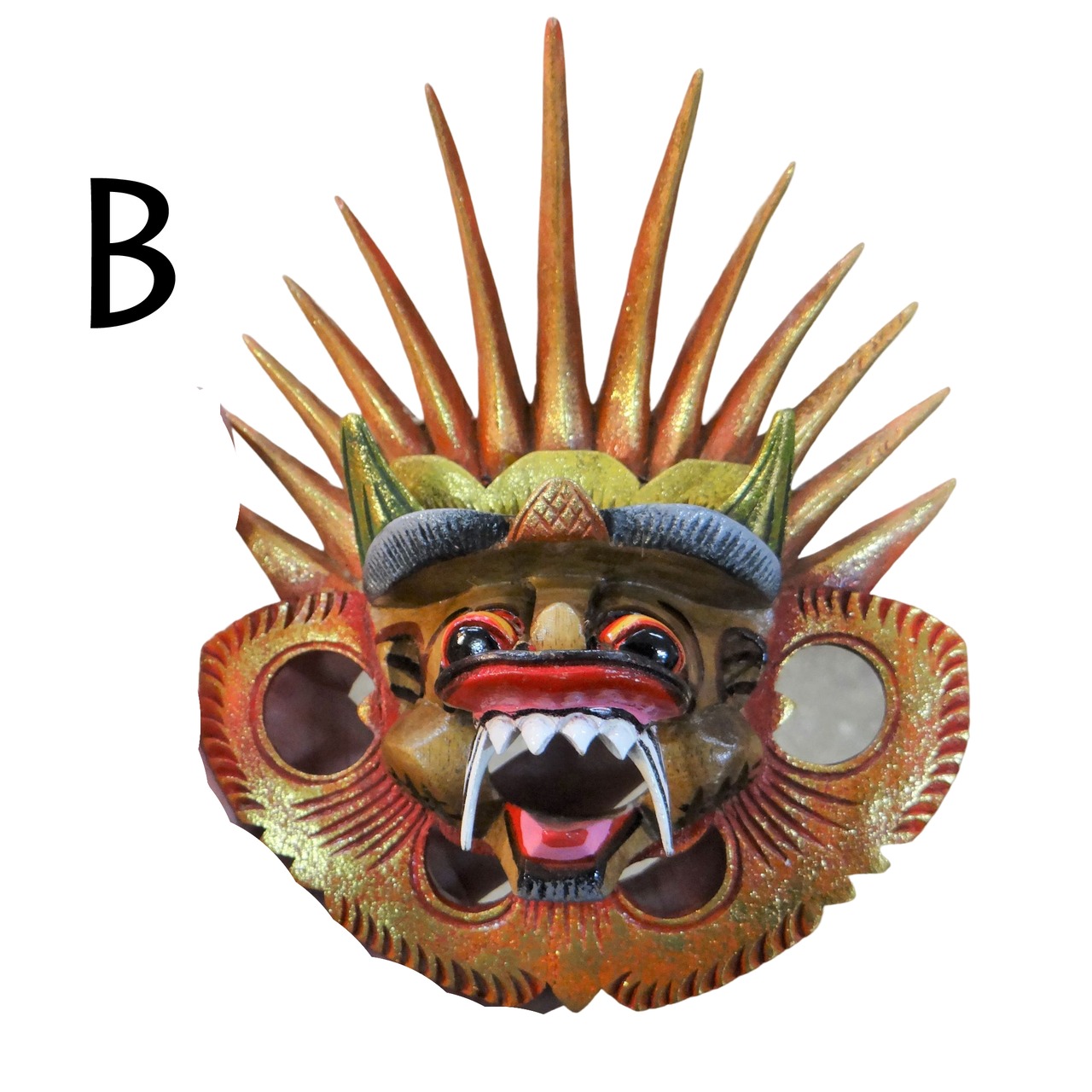 バリ 壁掛け マスク 木彫り 手彫り ハンドメイド Barong バロン インドネシア の魔除け 壁飾り ウォールデコ アジアン インテリア 雑貨 アンティーク風