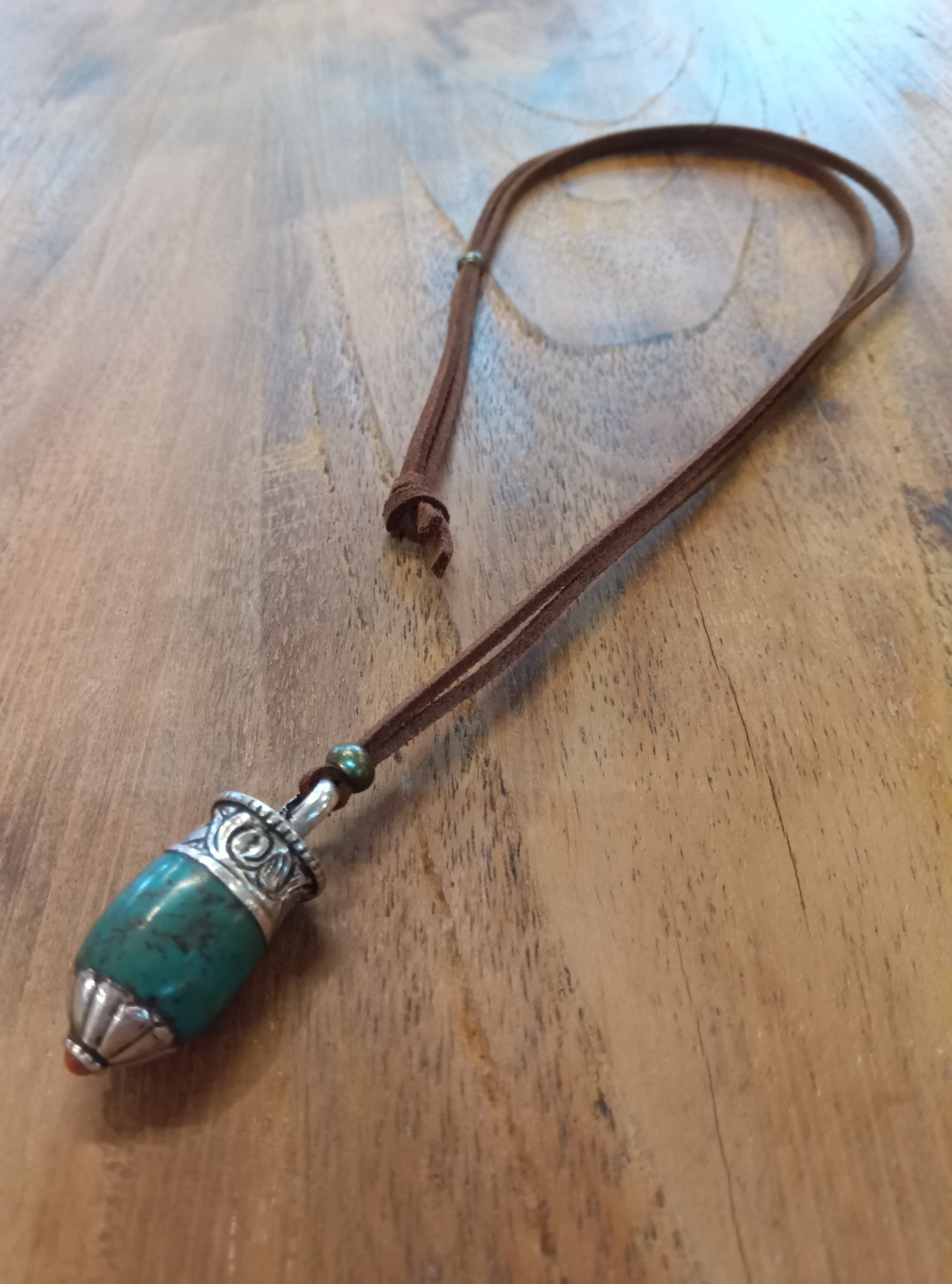 この美しいターコイズとシルバーのペンダントトップは、ネパールの職人さんが一つひとつ丁寧に手作りしたものです。