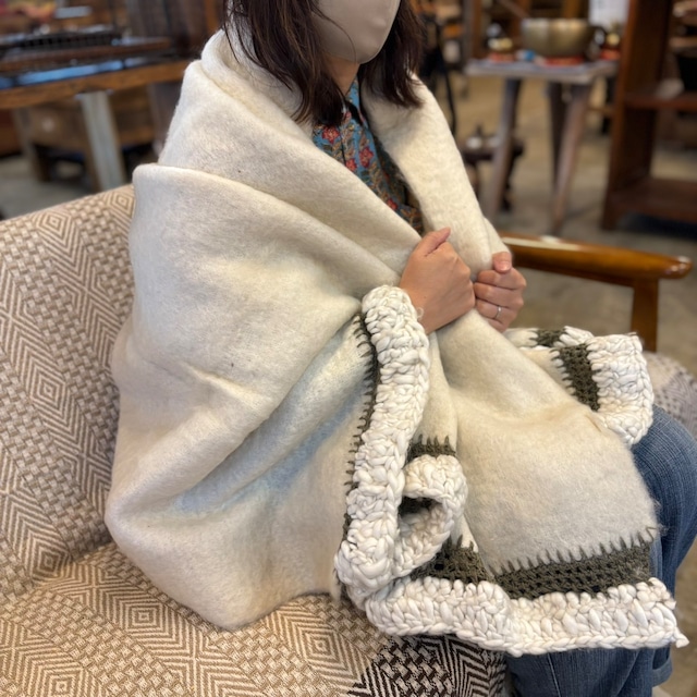 ショール ブランケット ひざ掛け 大判 肉厚 厚手 ウール 羊毛 暖かい あたたかい 軽い ふわふわ もこもこ 防寒 冷え対策 秋冬 インド製 ギフト